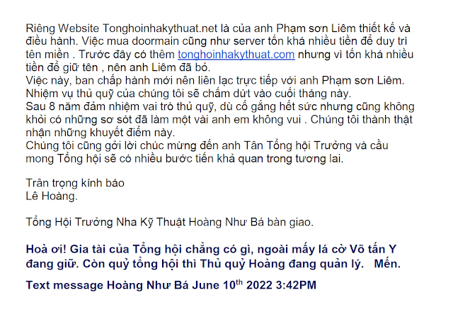 Điện Thư Biên Bản Bàn Giao của Thủ Quỹ THNKT Lê Hoàng ngày 4 tháng 6 năm 2022